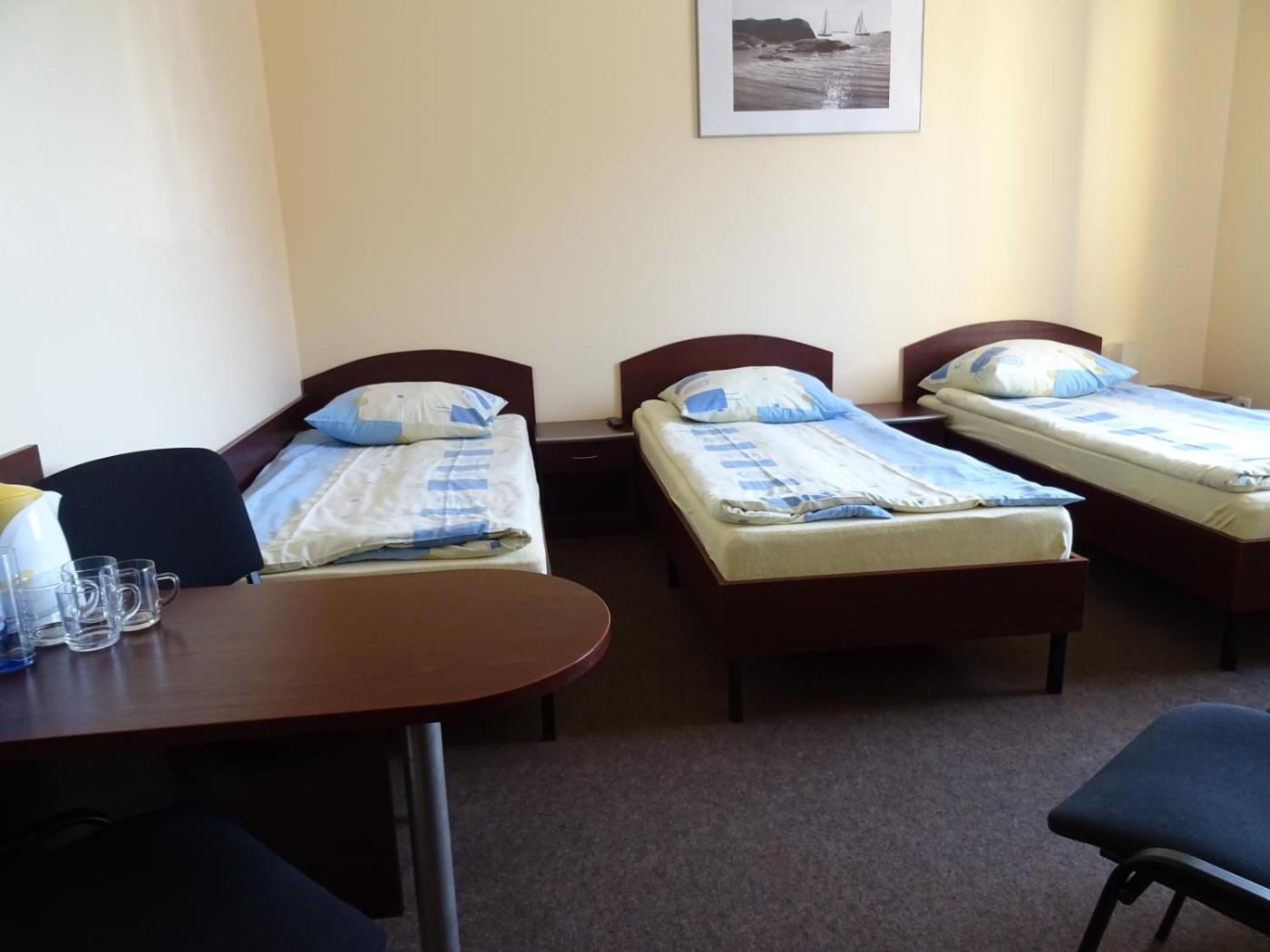 Pokój Trzyosobowy typu Standard. Pokój ten jest utrzymany w pastelowych kolorach. Znajduje się w nim łazienka oraz telewizor. Niektóre z pokoi dysponują również balkonem. Dla Gości przygotowano zestaw do parzenia kawy i herbaty. Pokój Trzyosobowy - 3 osobowy. Powierzchnia pokoju ok.: 18 mkw. ;