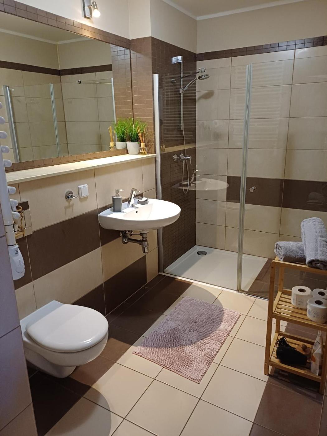 Apartament z 1 sypialnią. Featuring a private entrance, this apartment comprises 1 living room, 1 separate bedroom and 1 bathroom with a shower and a hairdryer. In the well-equipped kitchenette, guests will find a stovetop, a refrigerator, a dishwasher and kitchenware. Boasting a terrace with garden views, this apartment also provides a washing machine and a flat-screen TV with cable channels. The unit offers 2 beds. Powierzchnia pokoju ok.: 45 mkw.