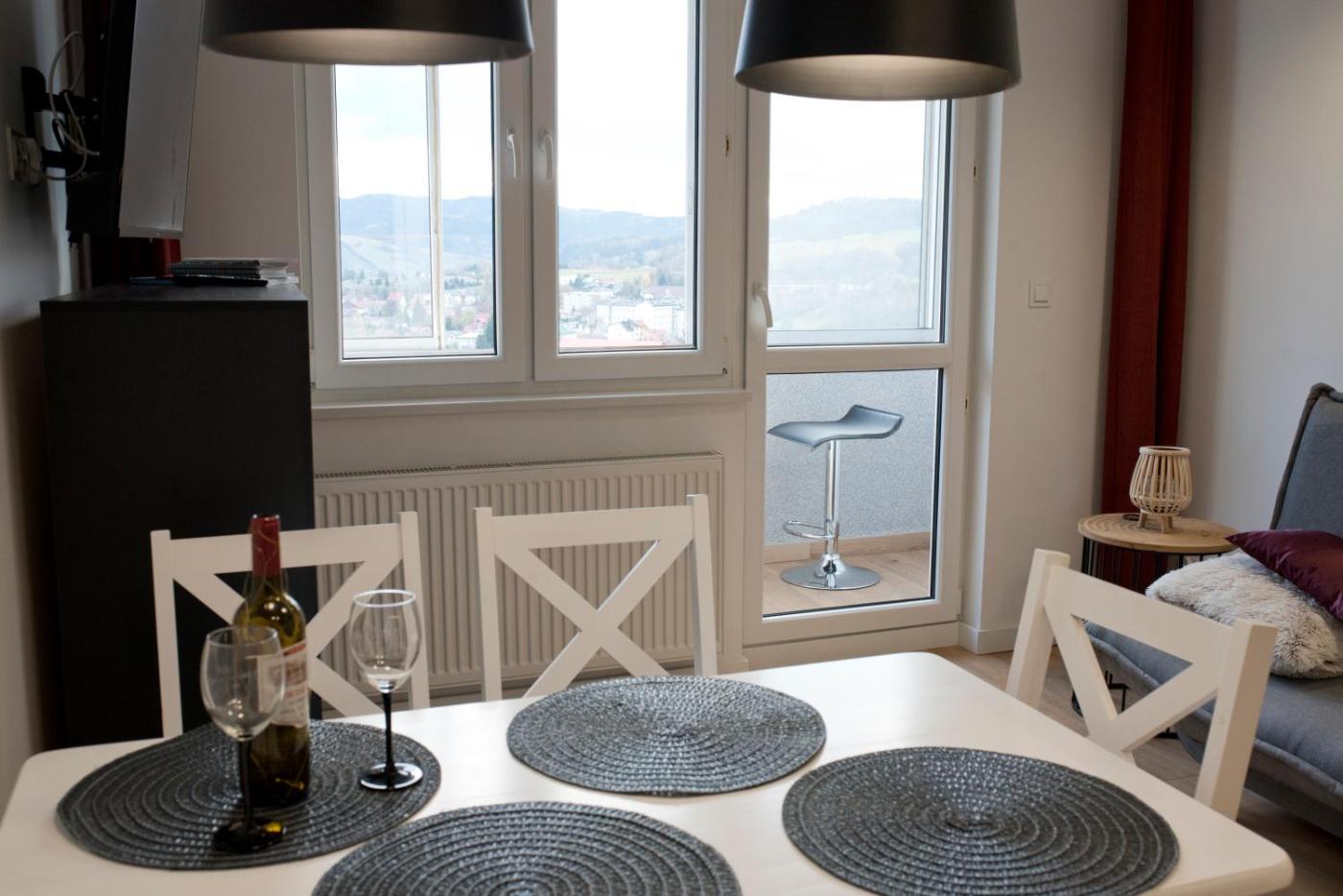 Apartament z 2 sypialniami. This apartment includes 1 living room, 2 separate bedrooms and 1 bathroom with a shower. In the well-equipped kitchenette, guests will find a stovetop, a refrigerator, kitchenware and an electric kettle. Boasting a balcony with mountain views, this apartment also offers a washing machine and a flat-screen TV. The unit has 4 beds. Apartament - 4 osobowy. Powierzchnia pokoju ok.: 45 mkw.