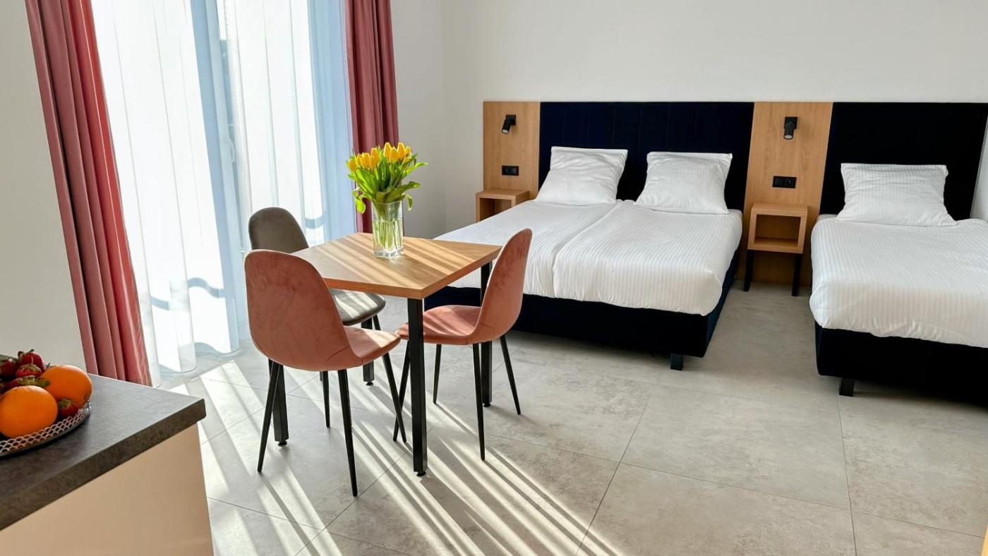 Pokój czteroosobowy z prywatną łazienką. The kitchen is equipped with a stovetop, a refrigerator and kitchenware. The quadruple room provides a tea and coffee maker, a dining area, a terrace with garden views as well as a private bathroom featuring a shower. The unit offers 3 beds. Pokój Czteroosobowy - 4 osobowy. Powierzchnia pokoju ok.: 27 mkw.