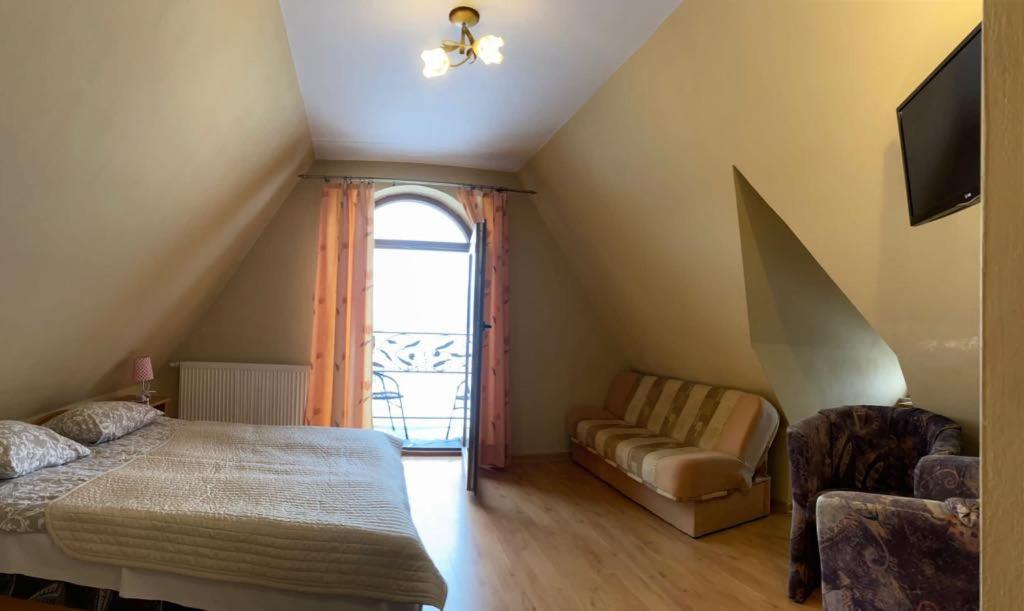 Pokój trzyosobowy z widokiem na góry. The triple room offers a wardrobe, an electric kettle, a balcony with mountain views as well as a private bathroom featuring a shower. The unit offers 3 beds. Pokój Trzyosobowy - 3 osobowy. Powierzchnia pokoju ok.: 18 mkw. ;