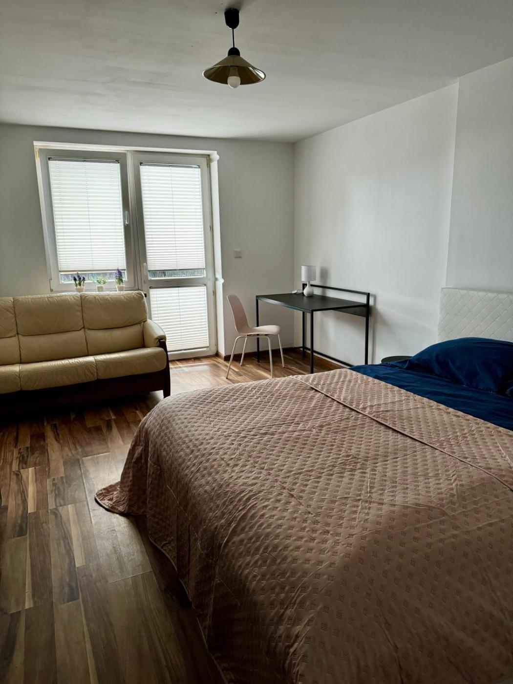 Duży pokój dwuosobowy. The well-fitted kitchen has a dishwasher, an oven and a microwave. This double room features a shared bathroom, a washing machine, a dining area as well as a balcony. The unit offers 1 bed. Pokój Dwuosobowy - 2 osobowy. Powierzchnia pokoju ok.: 25 mkw.