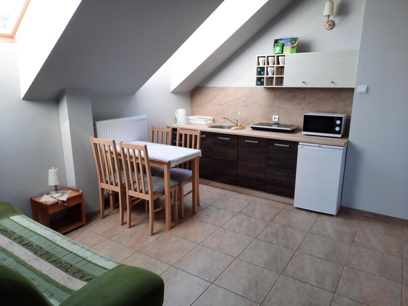 Duży pokój dwuosobowy. Providing free toiletries, this double room includes a private bathroom with a walk-in shower. In the well-equipped kitchenette, guests will find a stovetop, a refrigerator, kitchenware and a microwave. The double room provides a flat-screen TV, a tea and coffee maker, a dining area, a wardrobe as well as garden views. The unit offers 2 beds. Pokój Dwuosobowy - 3 osobowy. Powierzchnia pokoju ok.: 24 mkw. ;