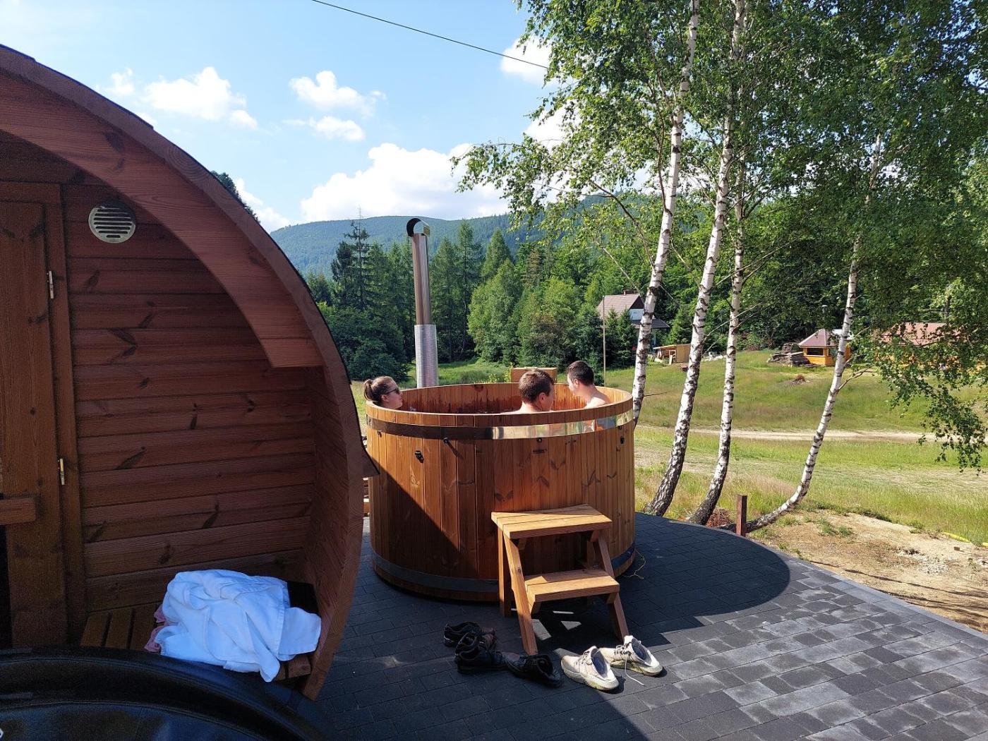 Domek z 2 sypialniami. The chalet features a tea and coffee maker, a wardrobe, a terrace with mountain views as well as a shared bathroom boasting a shower. The unit has 5 beds. Domek - 6 osobowy. Powierzchnia pokoju ok.: 45 mkw. ;