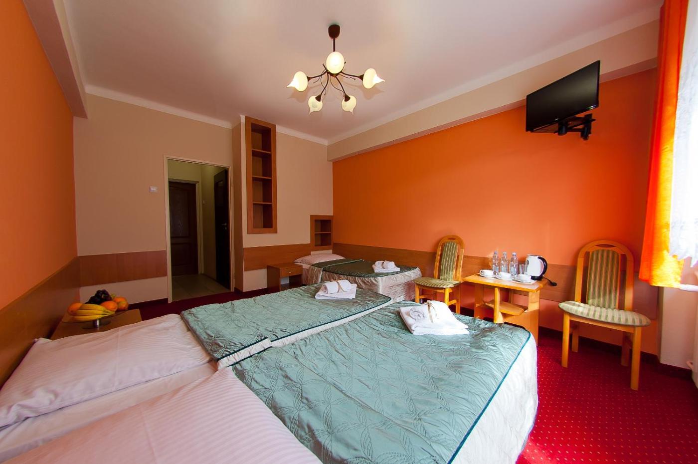 Pokój Czteroosobowy. Ten klasycznie urządzony pokój jest wyposażony w telewizor z płaskim ekranem. Goście mają też do dyspozycji łazienkę z prysznicem Goście mają do dyspozycji balkon z meblami ogrodowymi i widokiem na Beskidy. Pokój Czteroosobowy - 4 osobowy. Powierzchnia pokoju ok.: 24 mkw. ;