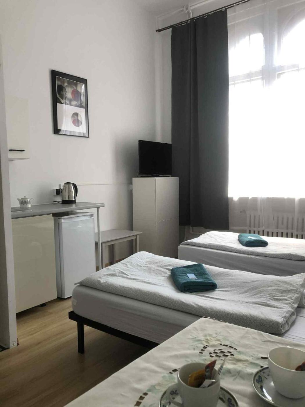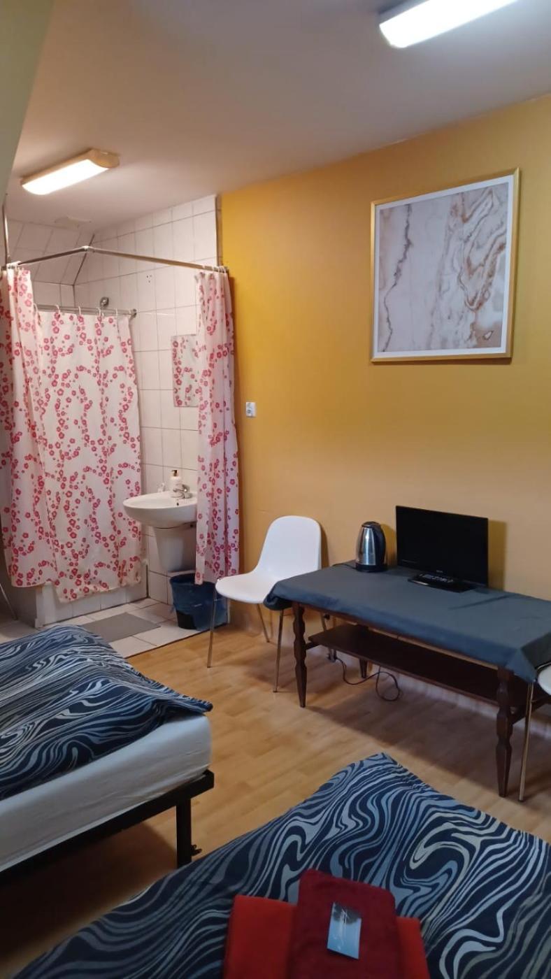 Pokój Dwuosobowy z prywatną łazienką poza pokojem. The double room offers an electric kettle, heating, as well as a private bathroom boasting a shower and a hairdryer. The double rooms kitchenette, which has a refrigerator and a microwave, is available for cooking and storing food. This double room provides a TV. The unit has 2 beds. Pokój Dwuosobowy - 3 osobowy. Powierzchnia pokoju ok.: 12 mkw. ;